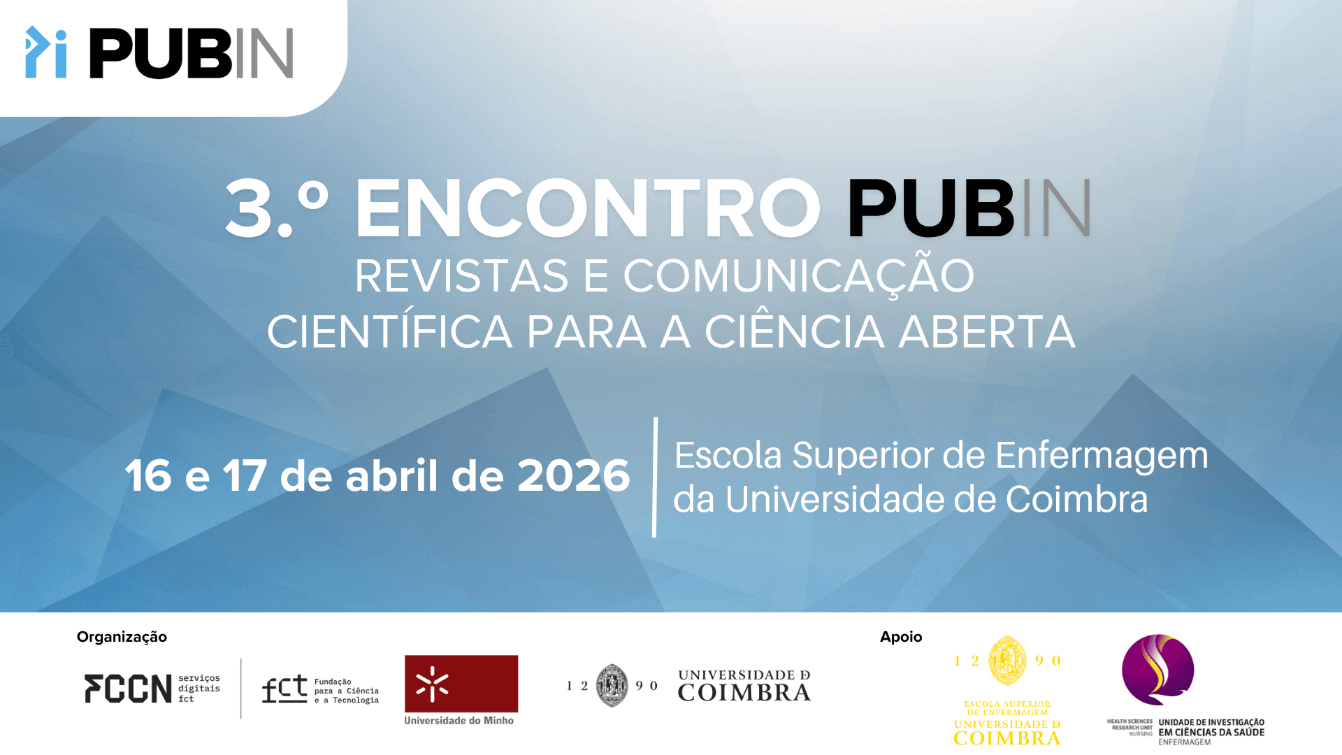 Nos dias 16 e 17 de abril de 2026, a Escola Superior de Enfermagem da Universidade de Coimbra será o ponto de encontro da comunidade editorial científica com o 3.º Encontro PUB IN: revistas e comunicação científica para a ciência aberta. Financiado pela Fundação pela Ciência e a Tecnologia (FCT) e promovido pela FCCN, a sua unidade de serviços digitais, em colaboração com a Universidade do Minho, este evento é um espaço dedicado à reflexão, à partilha e à inovação na comunicação científica.